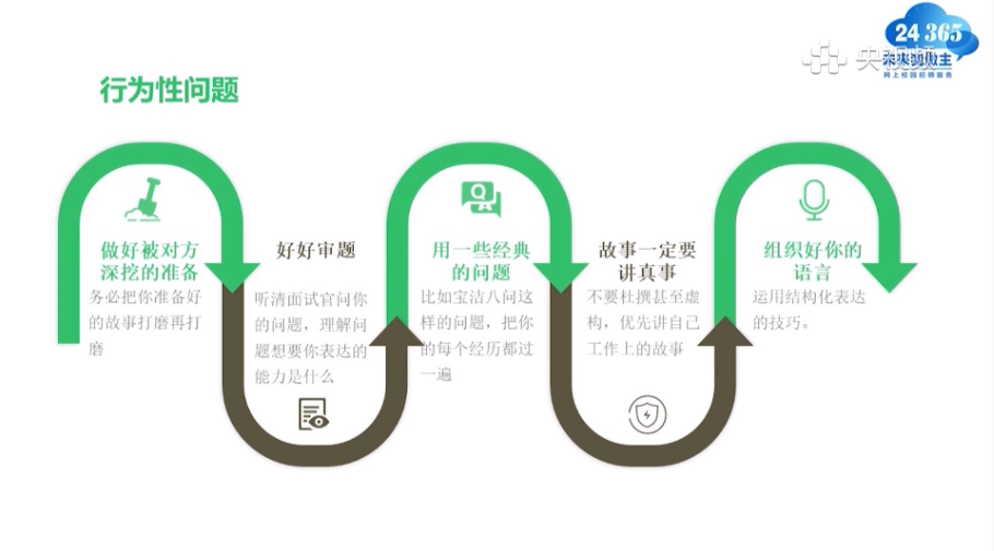 (1)面试内容:通过对过往经历的询问,了解你的行为模式,并通过行为模式了解你。